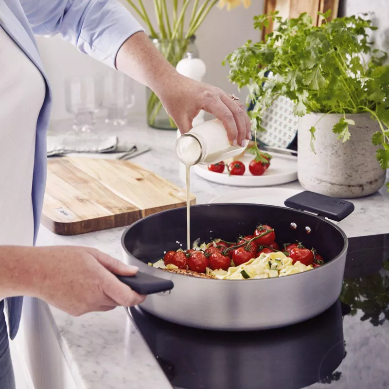 Poêles en fonte aluminium à fond « Scandinave » : les bords sont droits pour une surface de cuisson 20 % plus grande.