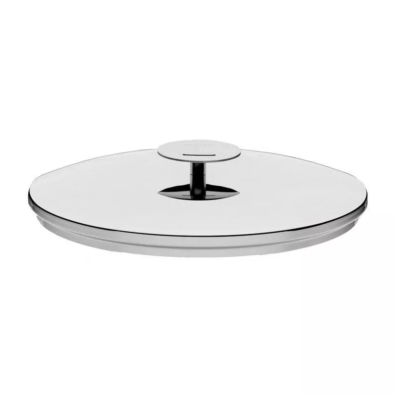 Couvercle en inox brillant Bouton inox brossé siglé Cristel.