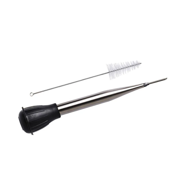 Réinjecter le jus dans la pièce de viande en cuisson à l’aide de la seringue qui se visse en bout du tuyau Inox