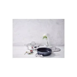 JULIENNE GRANIT Sauteuse En Fonte Aluminium Avec Couvercle Deux Anses En Verre Induction D28