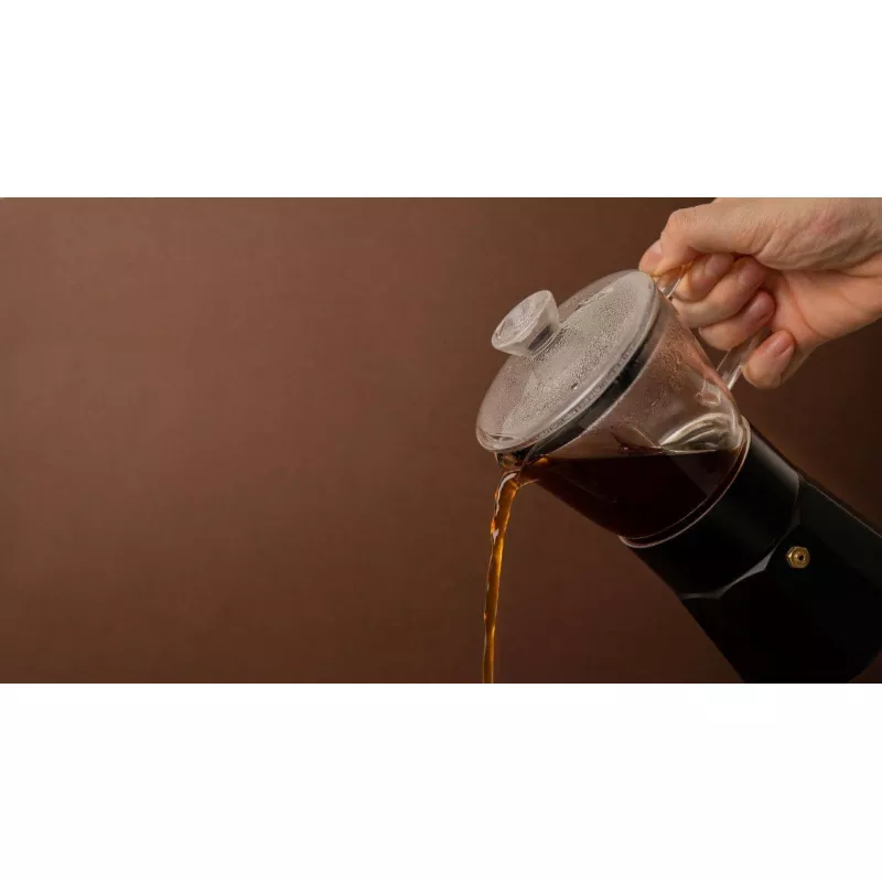 Elle revisite le design italien classique – avec une touche d’originalité. En incorporant du verre borosilicaté résistant à la chaleur dans la partie supérieure de la cafetière, cette innovation intelligente permet à l’utilisateur de regarder le café bouillonner et infuser !