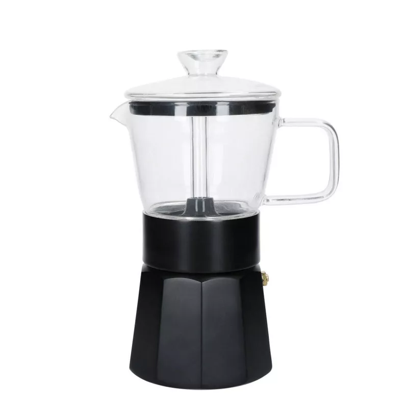 Fabriquée en acier inoxydable durable, la cafetière expresso convient à toutes les sources de chaleur, y compris l’induction, les plaques de cuisson traditionnelles au gaz, électriques et en céramique.